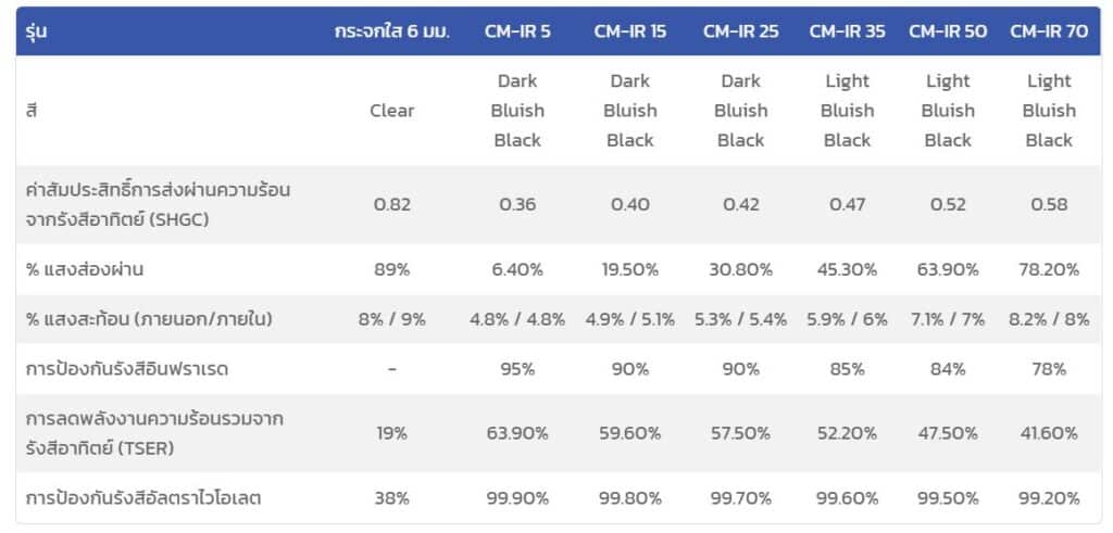 - ✅ ช่วยประหยัดพลังงาน ด้วยการป้องกันความร้อน แต่ให้แสงสว่างปกติ